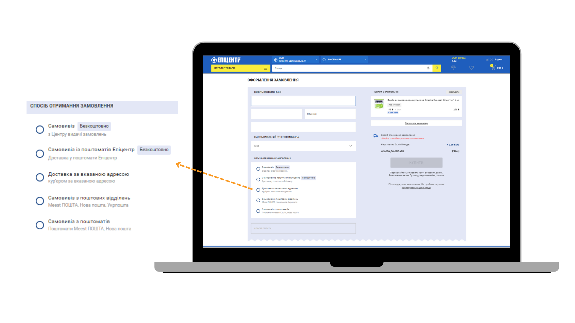 - Адресная доставка по Украине транспортом «Эпицентра»;