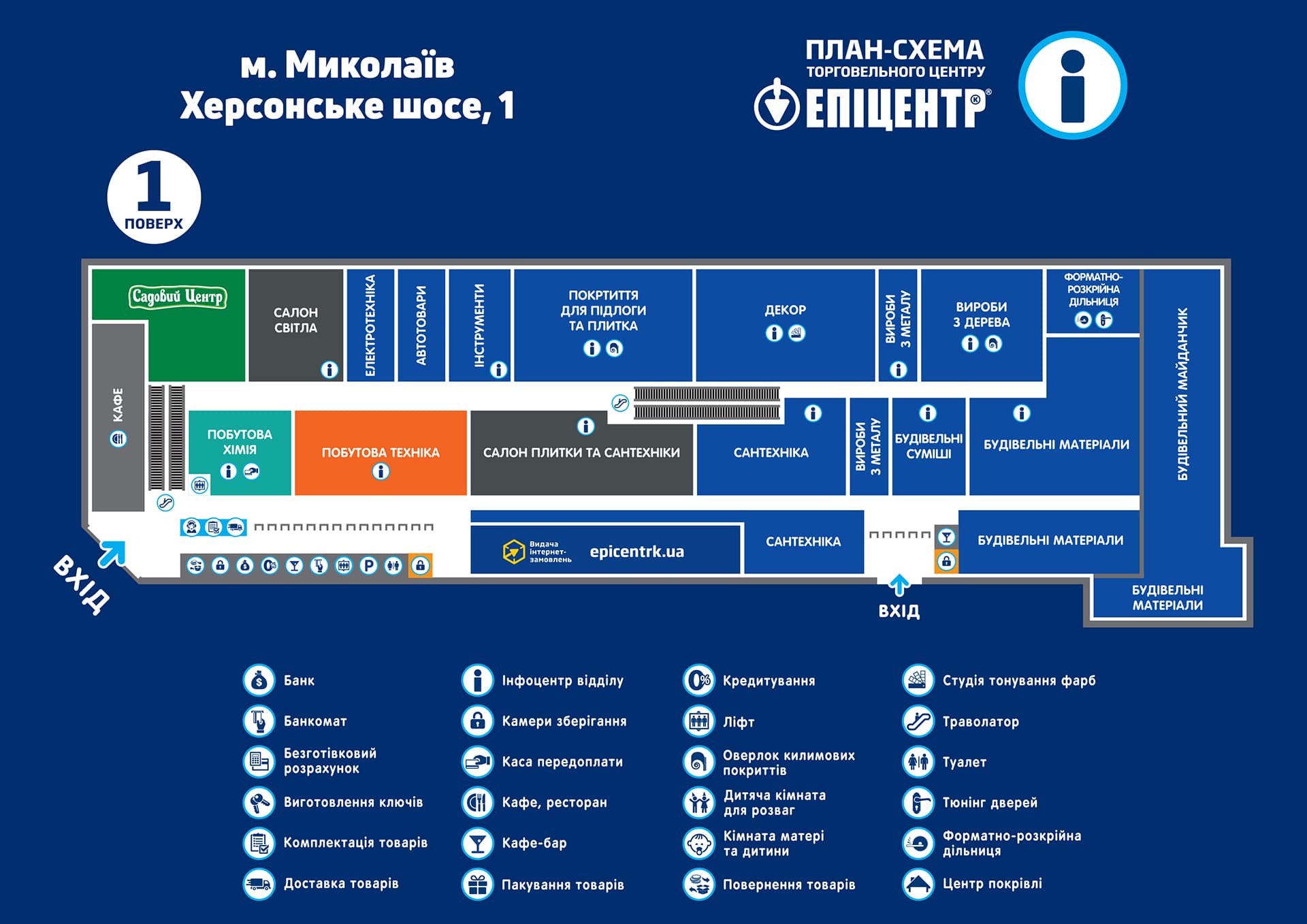 Торговый центр Эпицентр К по адресу: Херсонское шоссе, 1, Николаевская область, Николаевский район, г. Николаев