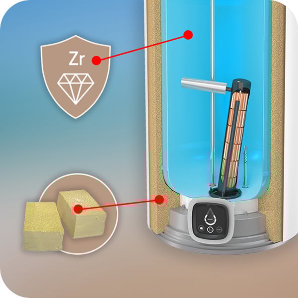 Содержание циркония в эмали способствует высокой прочности, эластичности и химической стойкости покрытия, гарантирует надежную защиту бака от протечки даже при высоких температурах и давлении.