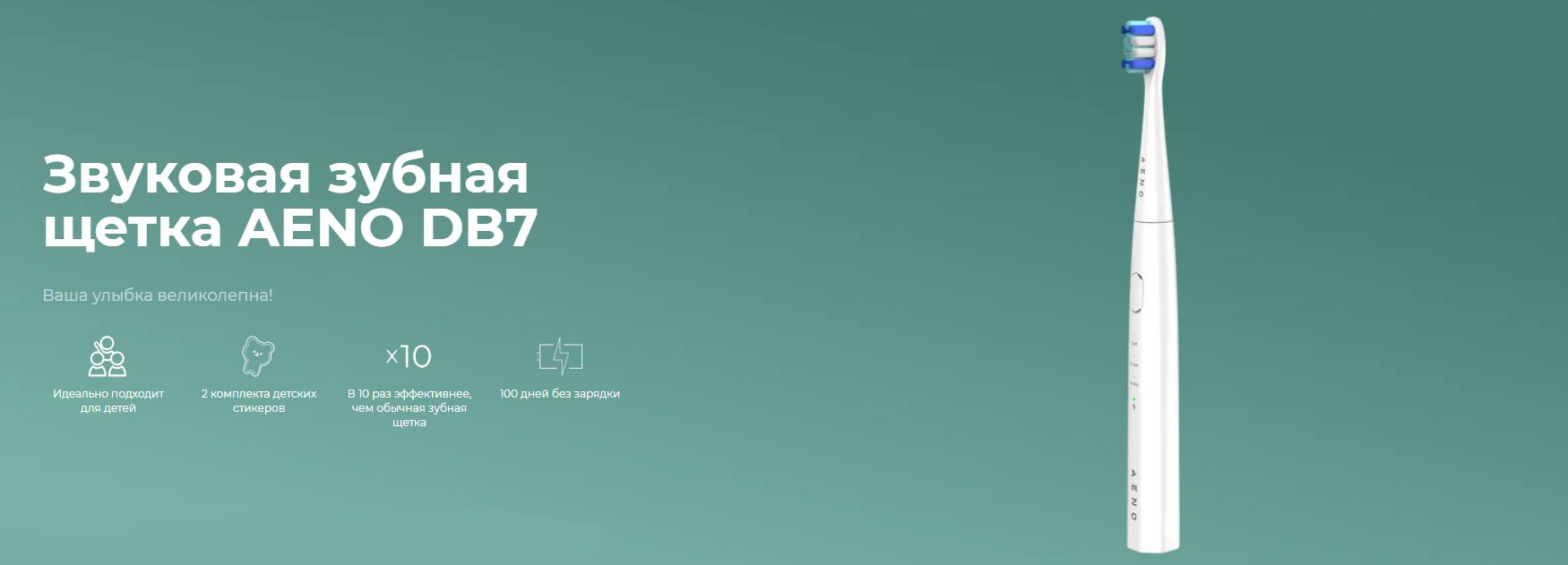 Одного полного заряда хватает на 100 дней ежедневного использования. Возьмите зубную щетку AENO с собой и поддерживайте гигиену полости рта с комфортом, где бы вы ни были!