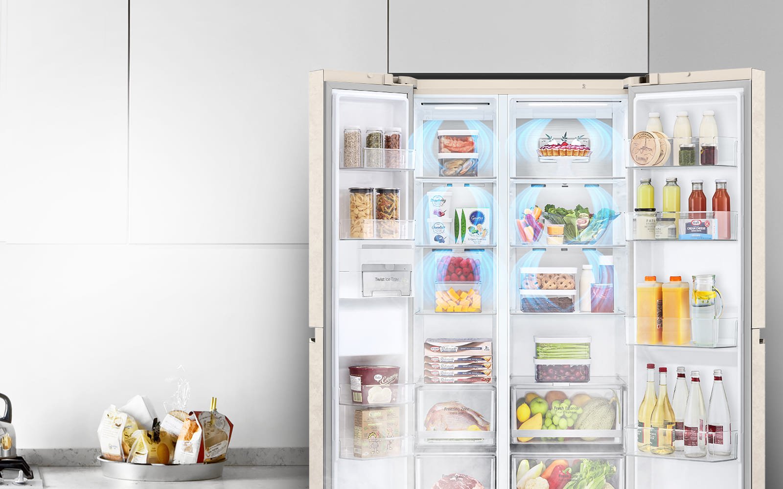 В рамках технологии Hygiene Fresh+ от LG используется фильтр,устраняющий большинство причин порчи еды: пыль, грибковые споры, кислый, щелочной запах и бактерии. Система устраняет до 99,9% содержащихся в воздухе веществ, которые загрязняют пищу, и очищает воздух в холодильнике,продлевая срок хранения продуктов.