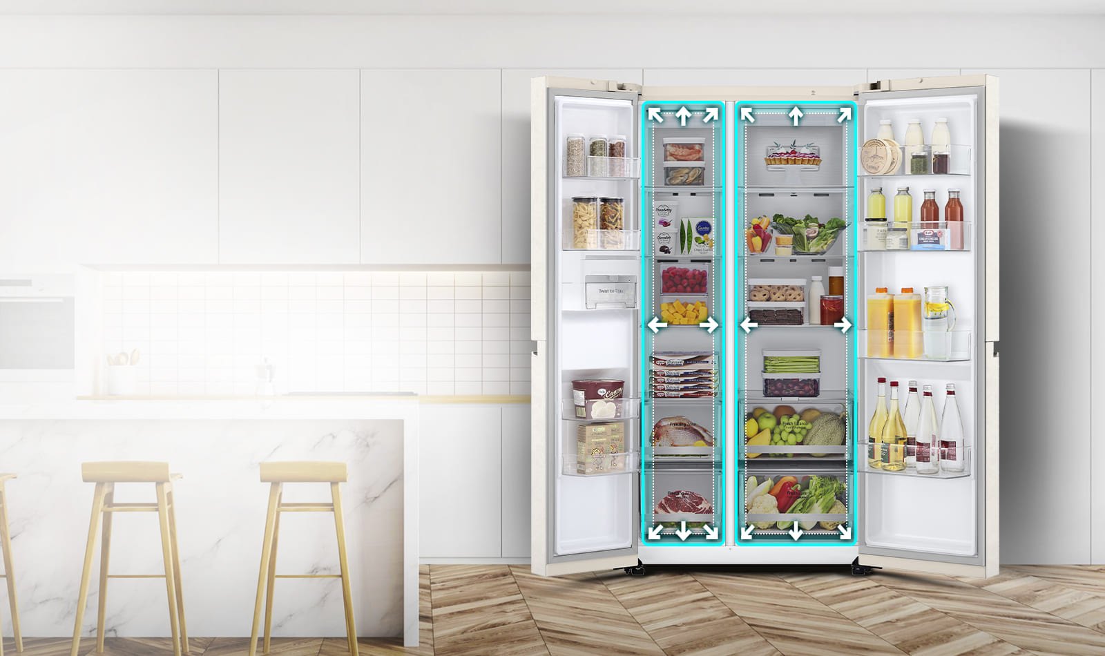 Наслаждайтесь большим пространством для хранения ваших продуктов и напитков. Большой холодильник для всей семьи.