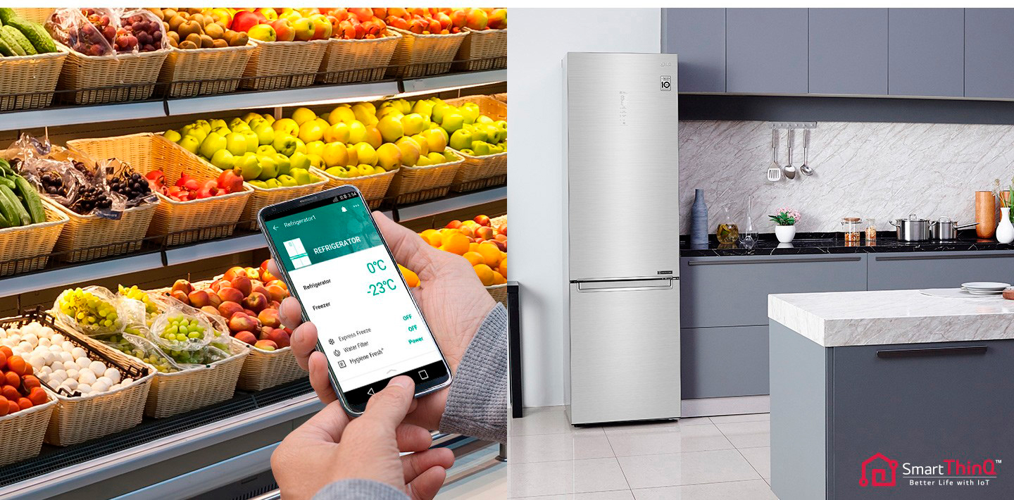 Контролируйте ваш холодильник с телефона или планшета. Функция Wi-Fi обеспечит еще большее удобство использования. Холодильник с Wi-Fi и активацией SmartThinQ App позволяет контролировать работу холодильника даже когда вы не находитесь дома.