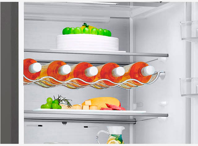 Полка для вина и складная полка в два сложения позволяют легко группировать продукты по типу для удобной организации продуктов внутри холодильника.
