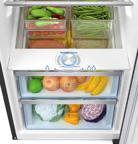 Для продления свежести овощей и фруктов необходим оптимальный климат, именно по этой причине в холодильнике установлена система контроля влажности. Технология самостоятельно определяет и регулирует уровень влажности, активируя систему после каждого открытия и закрытия дверцы*.