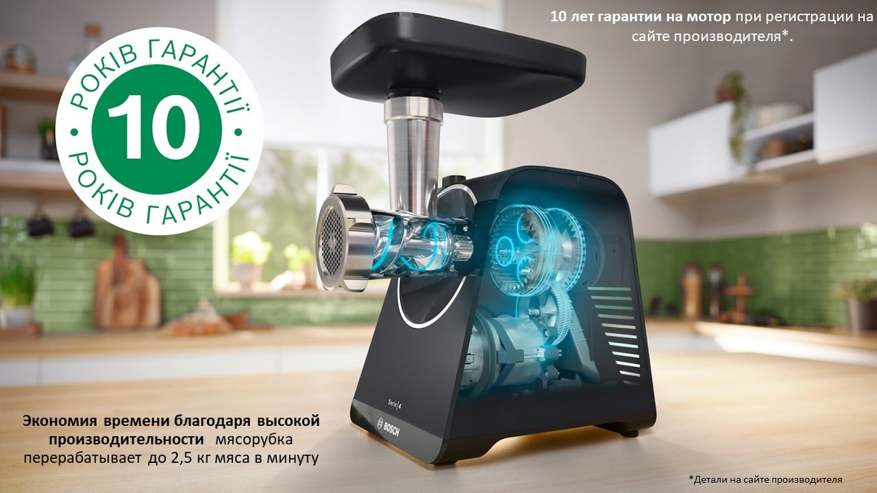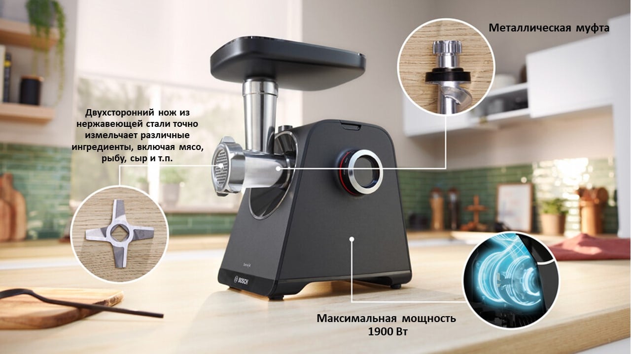 Основные характеристики Мясорубка Bosch MultiPower Серия 4 MFWS440B