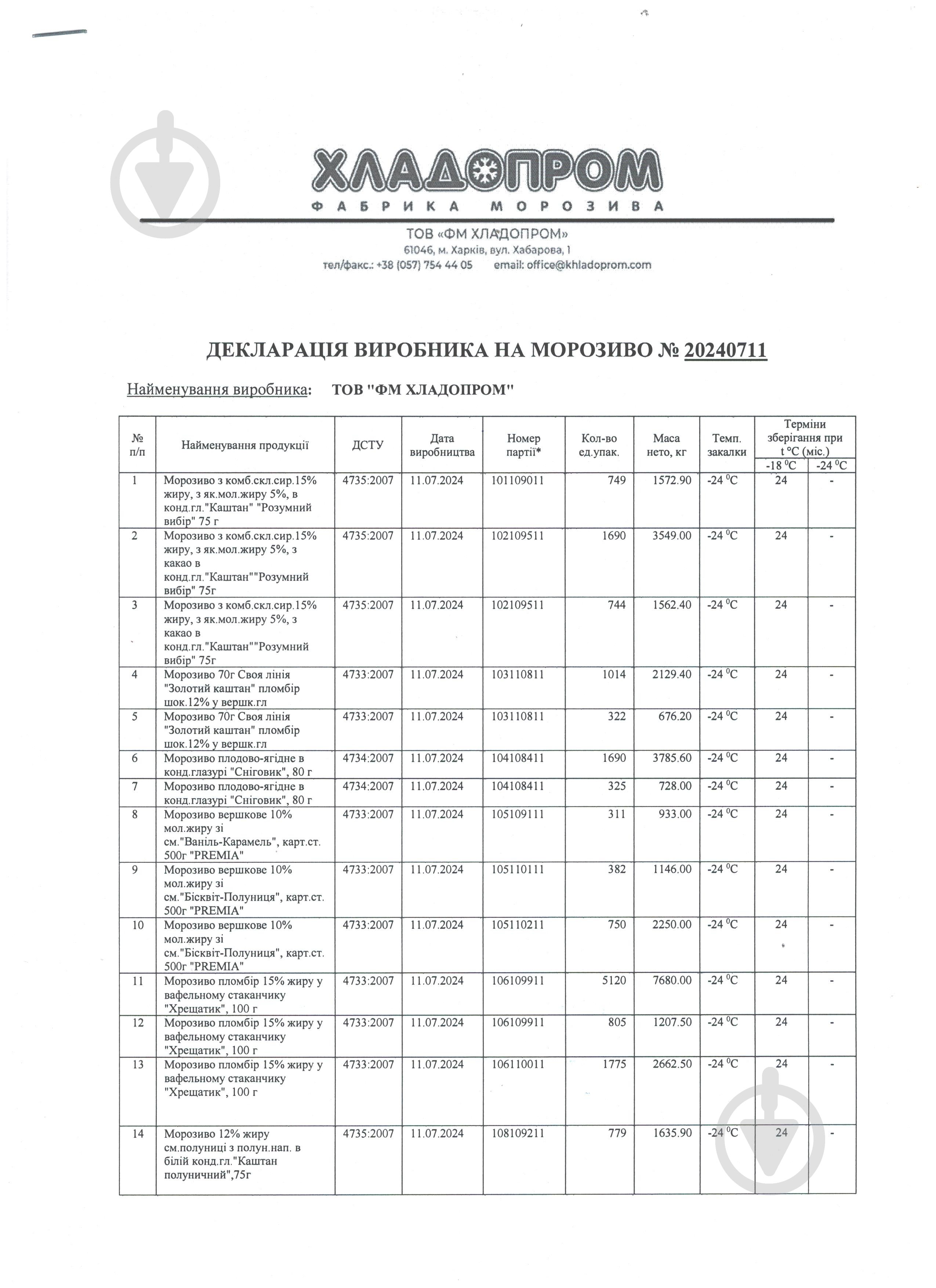Мороженое ХрещатикПродавец товара:ООО «Эпицентр К»