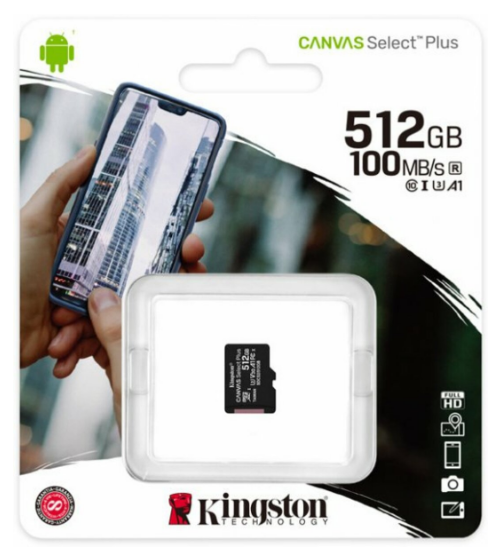 Карта памяти Kingston microSDXC Canvas Select Plus 512 Гб Class 10 UHS-I A1 (SDCS2/512GBSP)