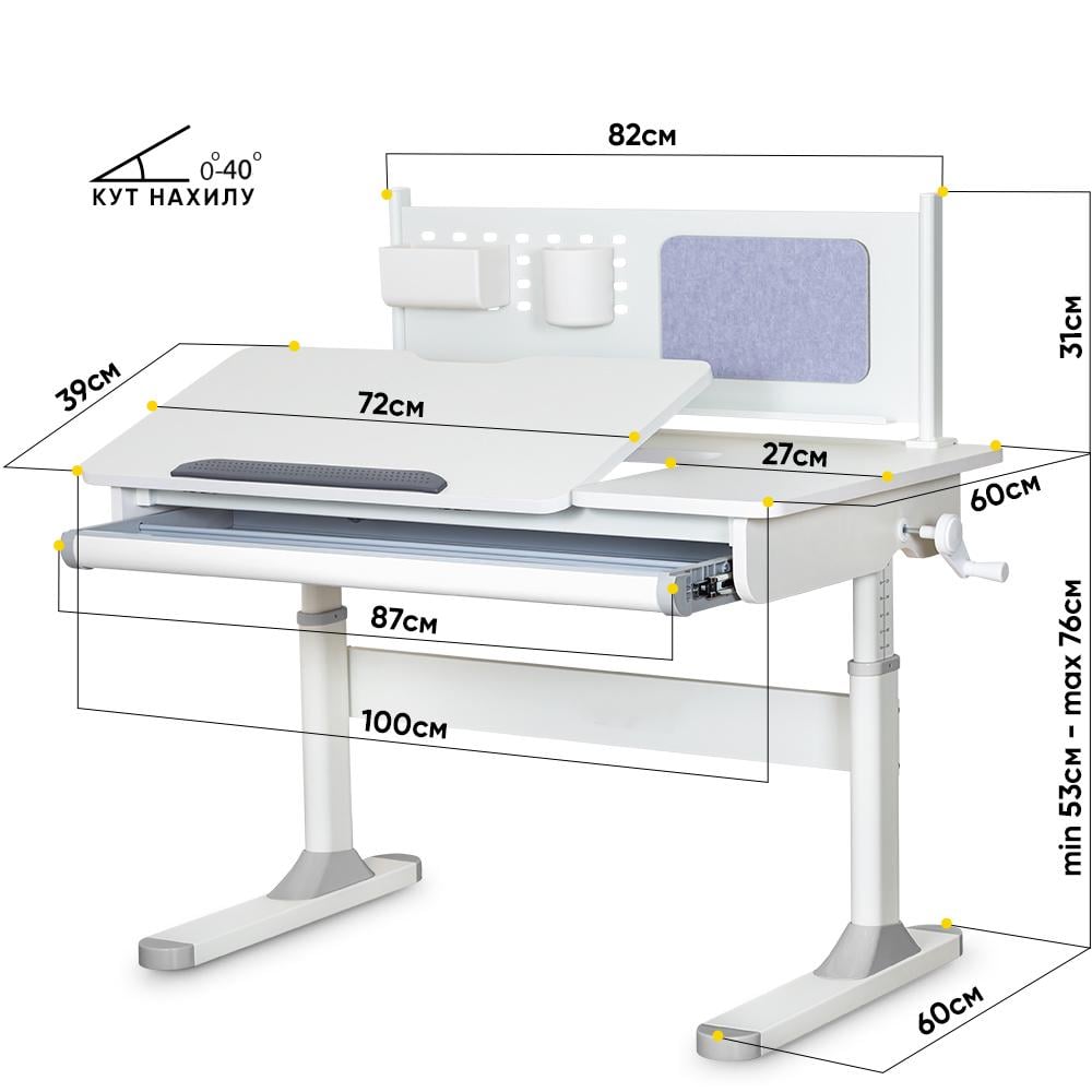 Детский стол Evo-kids TH-325 – современная модель в мире растущих детских столов. Он изготовлен из крепких безопасных материалов и гармонично впишется в интерьер любой детской комнаты. Изменяет высоту, угол наклона столешницы, полка с подставкой для книги, имеет выдвижной органайзер и стойкие металлические ножки.