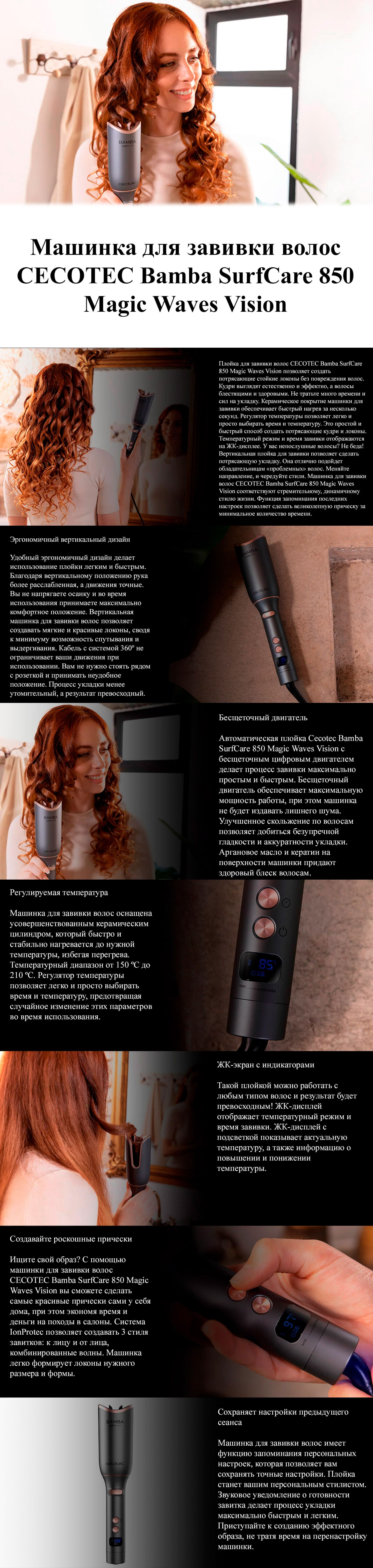 Характеристики Плойка CECOTEC Bamba Surfcare 850 Magic Waves Visio CCTC-04233