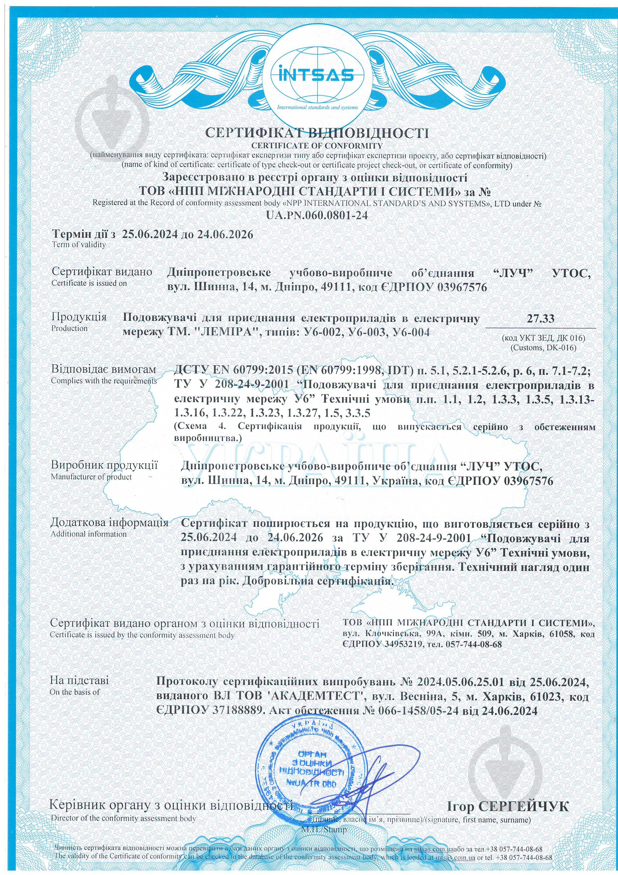 Характеристики Удлинитель Леміра без заземления 1 гн. черный 15 м У6-003 2х1,5