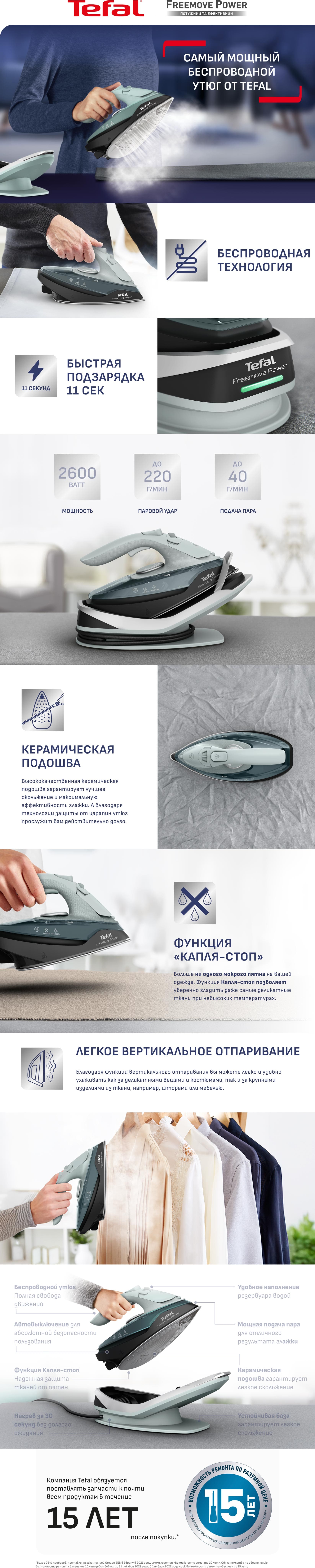 Основные характеристики Утюг Tefal Freemove Power FV6670E0