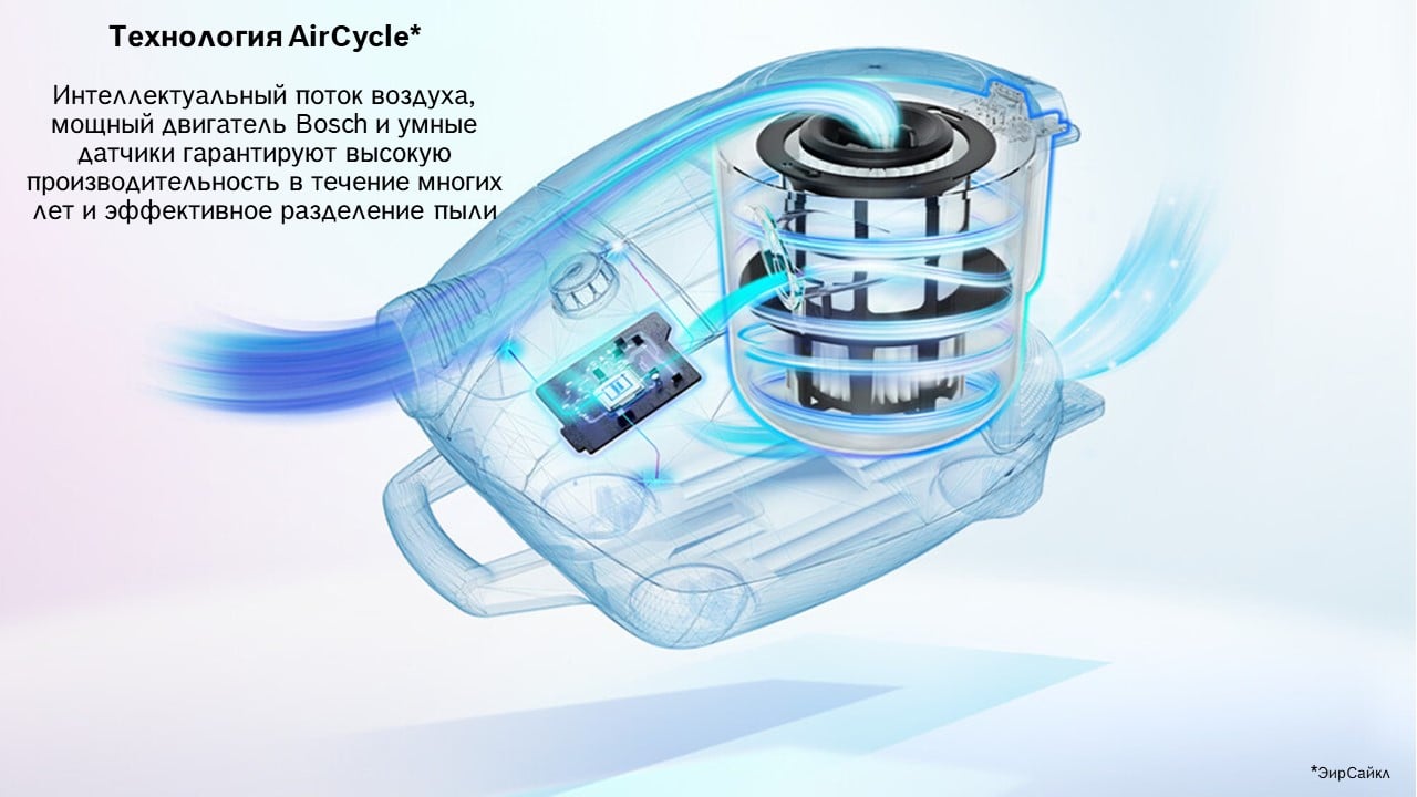 - система SmartSensor Control, система SelfClean System: самоочистка фильтра от пыли, система эффективного разделения пыли Air Cycle Technology, турбощетка с возможностью самоочистки, 10 лет гарантии на мотор