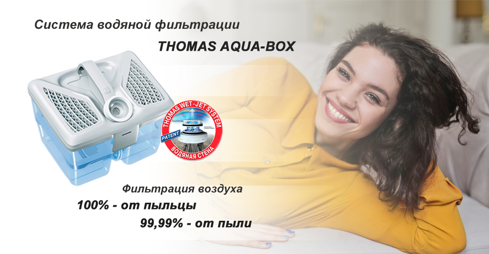 - Уникальный закрытый аквафильтр THOMAS AQUA-BOX с запатентованной системой подавления пыли Wet-Jet System.