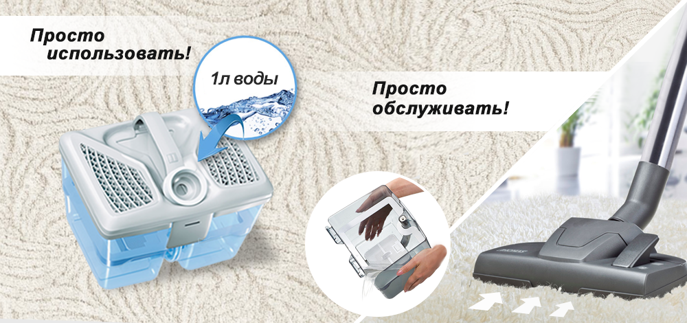 С аквафильтром можно влажный мусор собирать без проблем, отмыли любимый семейный ковер, есть хепа-фильтр моющийсяч, главное высушить перед использованием. Нравится.
