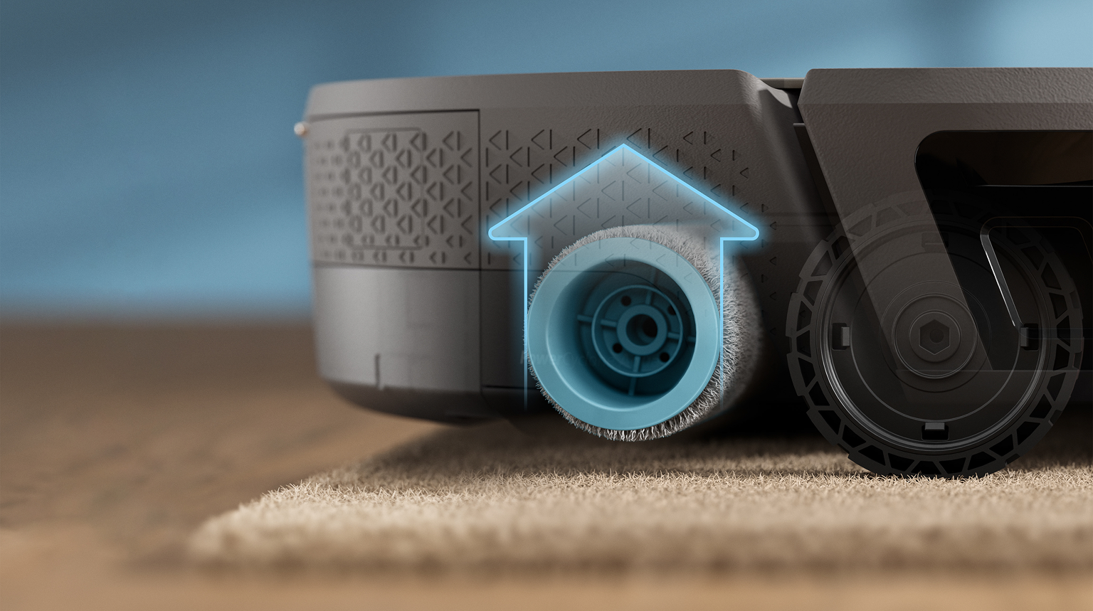 Благодаря системе подъема двойных роликов, робот автоматически поднимает швабру, как только обнаруживает ковер.