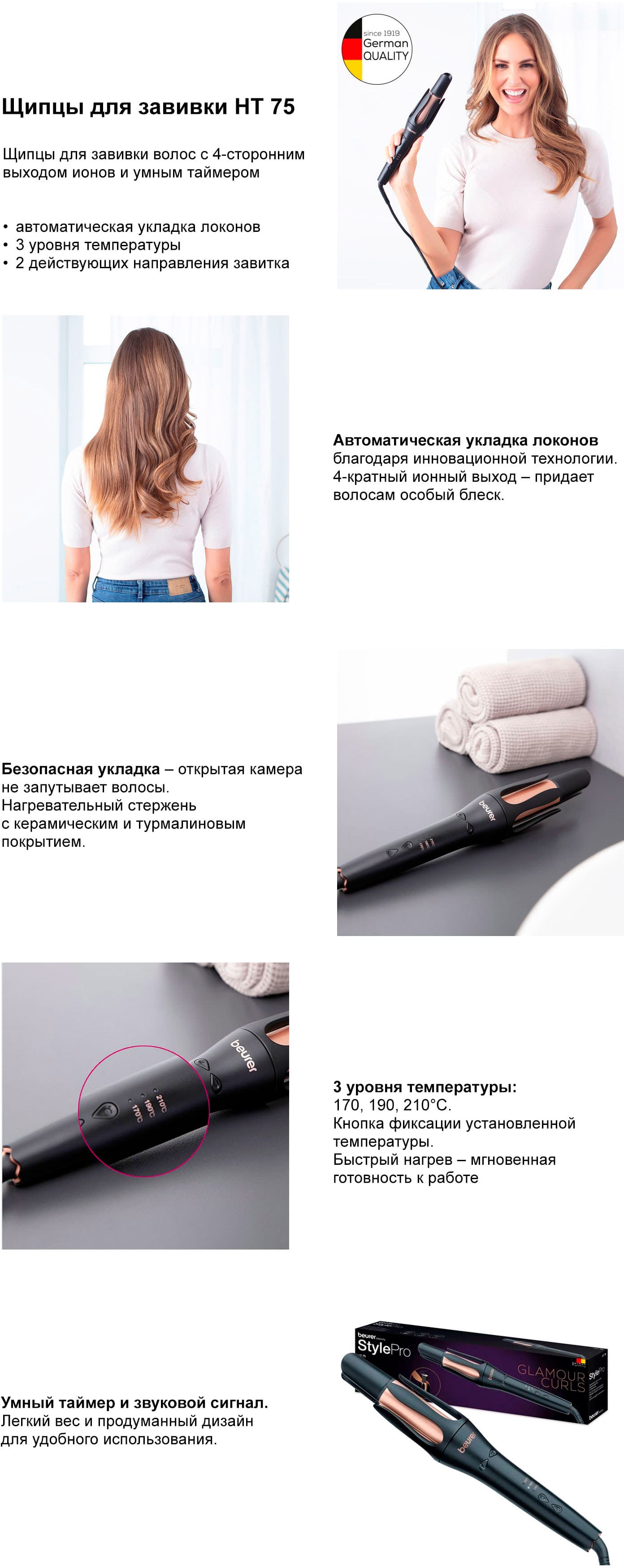 - Завивка локона всего 12 секунд Интеллектуальный таймер — подает акустический сигнал когда локон готов