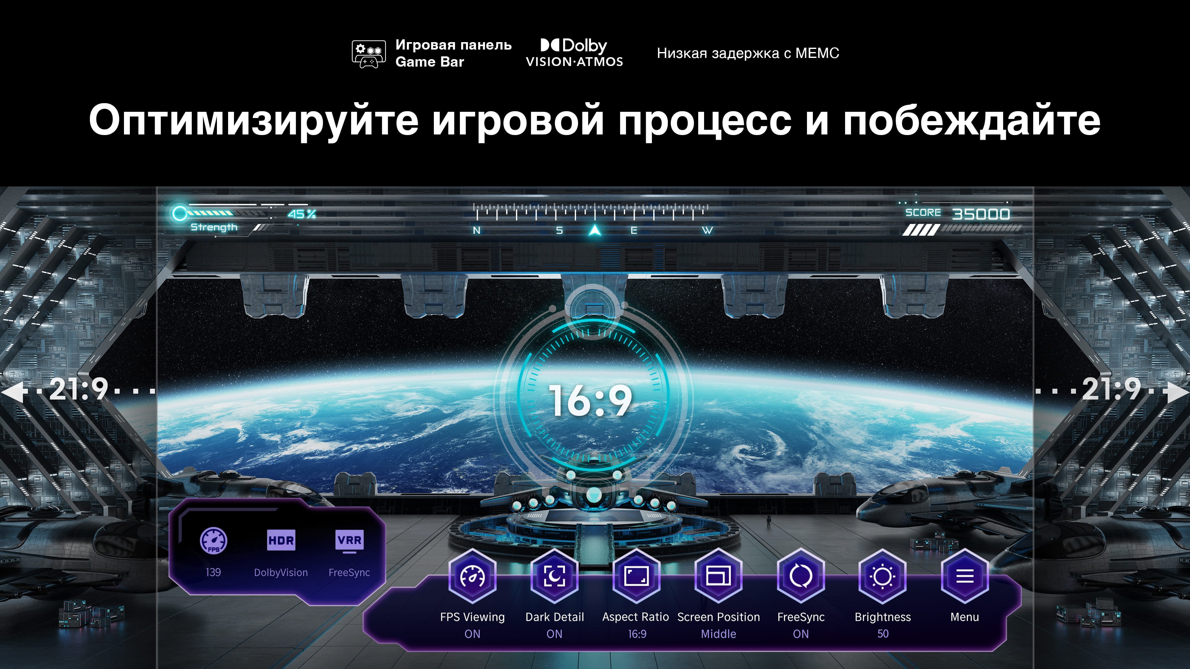 - HDMI 4: HDMI2.1 (ALLM, VRR, 144 Гц)