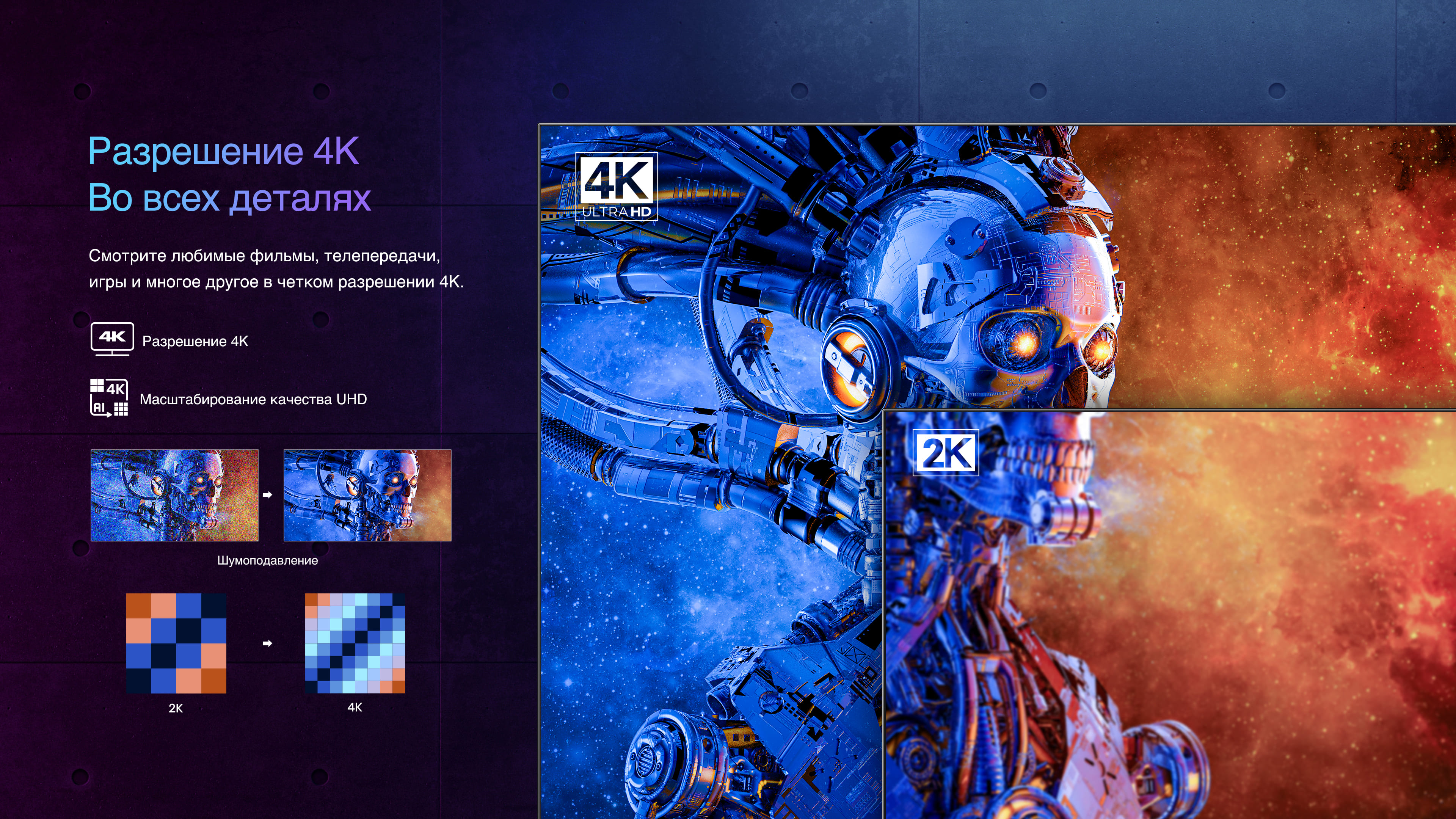 - Картинка просто супер 4 к пульт працює як блютуз і также інфрокрасним я ще пульт з блюткзом небачив звук сильний об'ємний з сабуфером як домашній кінотеатр.