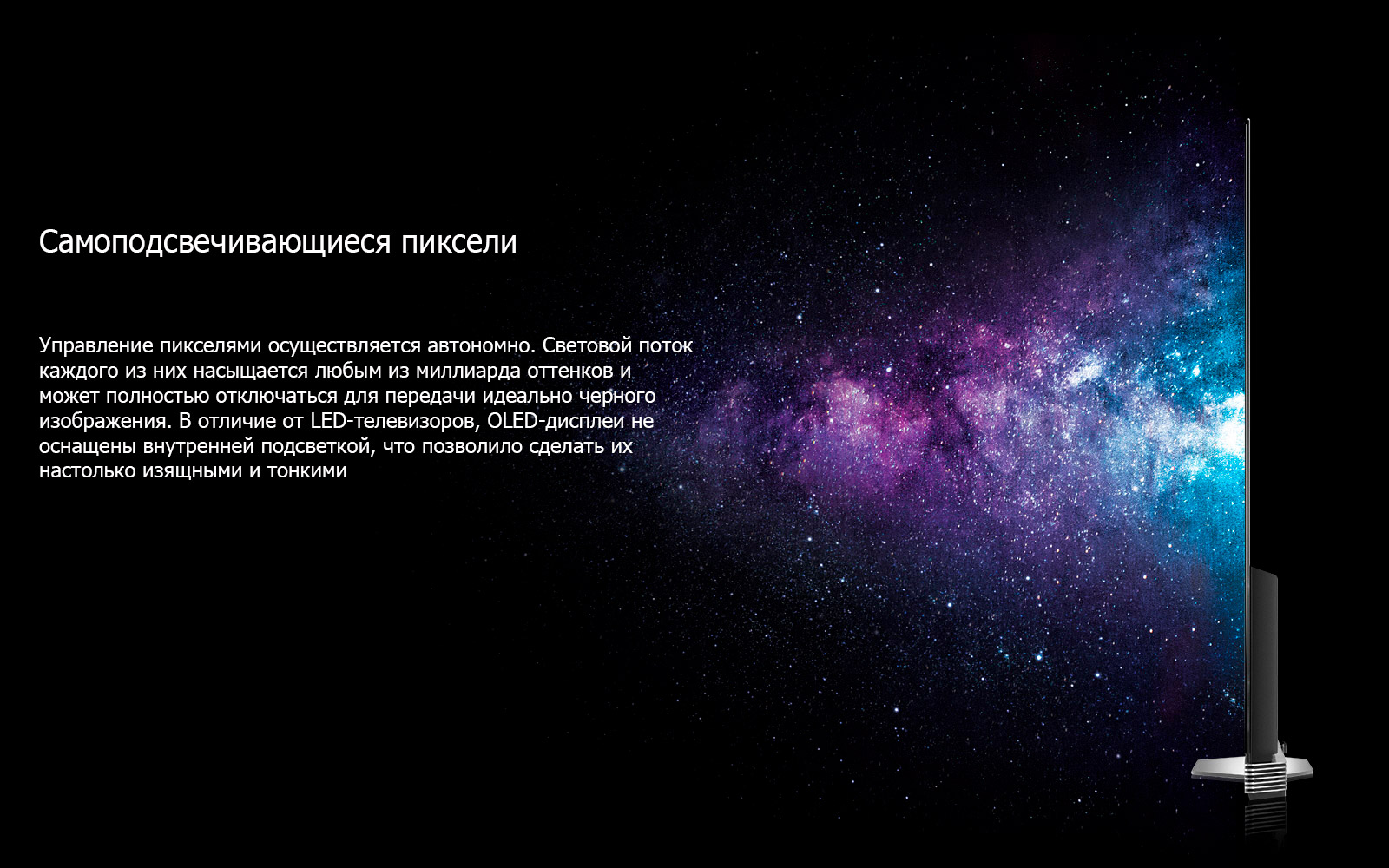- Bluetooth, веб-браузер, Content Store, My Channels, Magic RCU (MR16 + SP16), Magic Zoom, Mobile App, WiDi, Miracast, DLNA, OLED HDR, HDR10, Dolby Vision, HDR Effect, 4K upscaler, Pixel Dimming, Perfect Viewing Angle, Perfect Black, Perfect Color, 3D Color Mapping, Billion Rich Colors, Infinite Contrast, Dynamic Color Enhancer, Active Noise Reduction