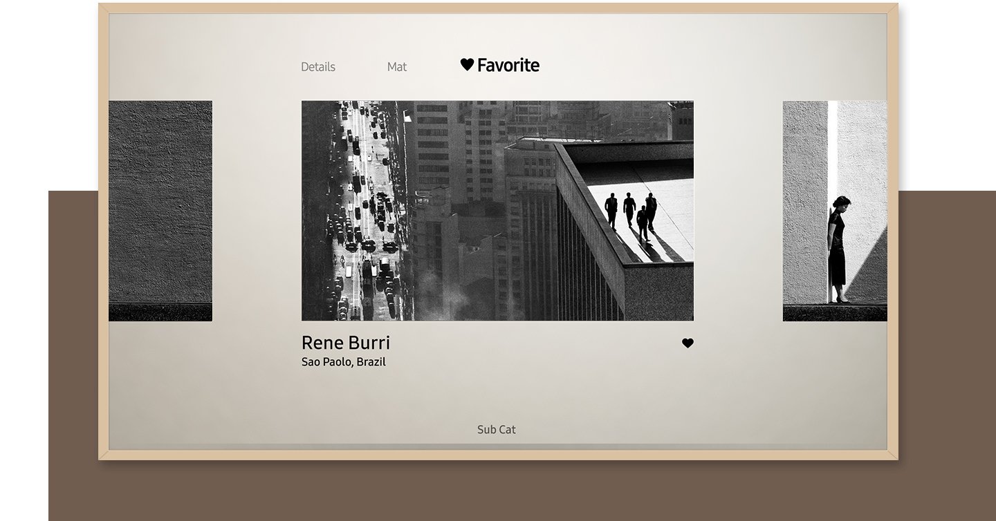 Транслируйте на The Frame любимые элементы искусства, создав личную коллекцию шедевров. Отметьте выбранные картины или фотографии и поместите их в отдельную подборку на телевизоре*.