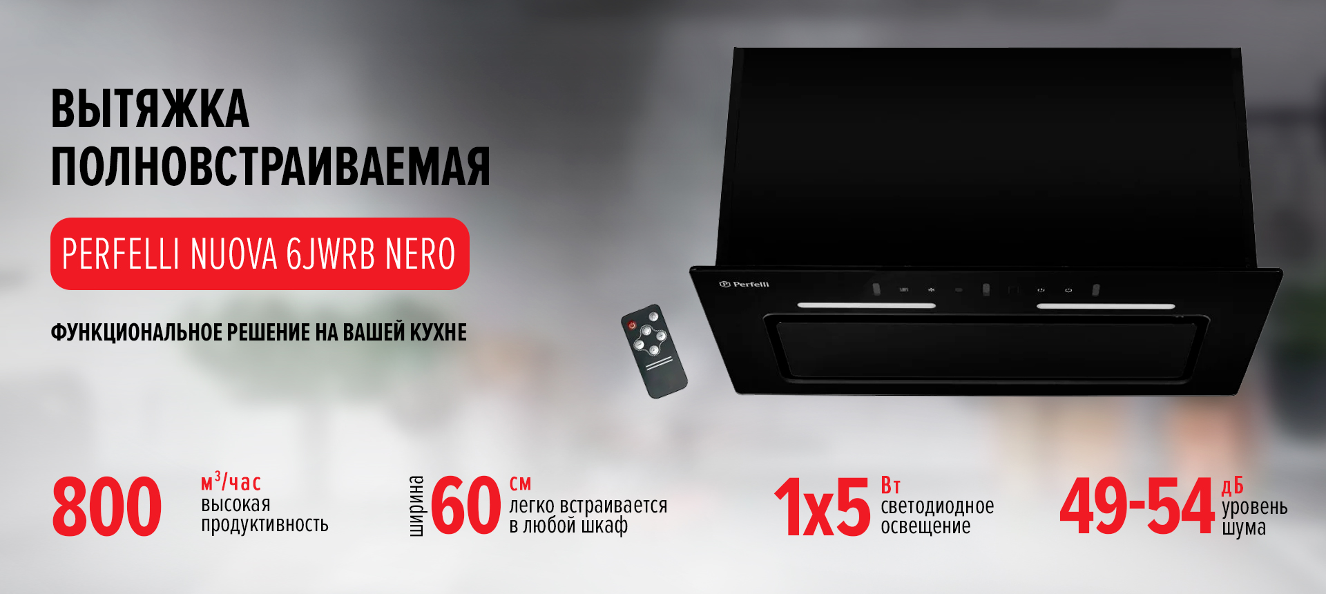 Встроенная вытяжка PERFELLI NUOVA 6JWRB NERO — элегантность, эффективность и передовые технологии для вашей кухни!