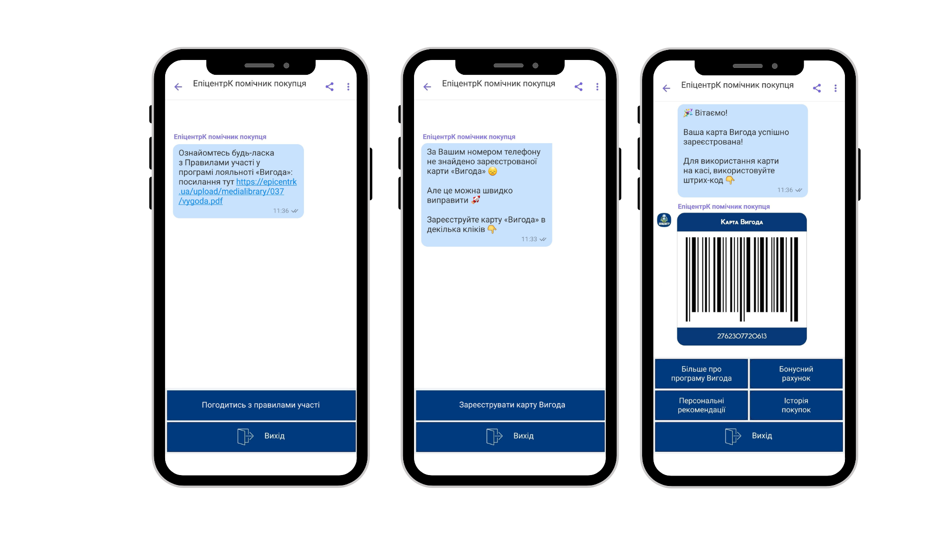 - на касі під час здійснення покупки в ТЦ «Епіцентр»;