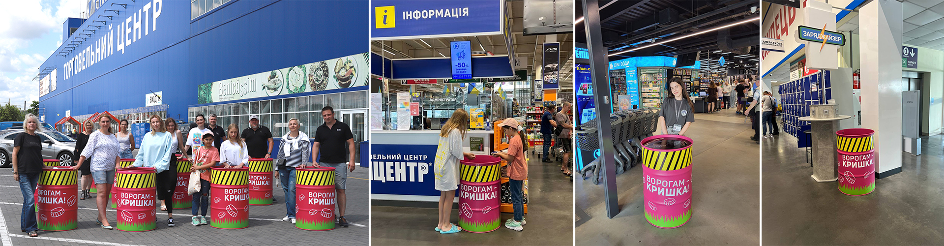 Приносьте пластикові кришечки до будь-яких наших ТЦ «Епіцентр» у Києві. Знаходьте яскраві рожеві бочки і залишайте свої кришечки там.
