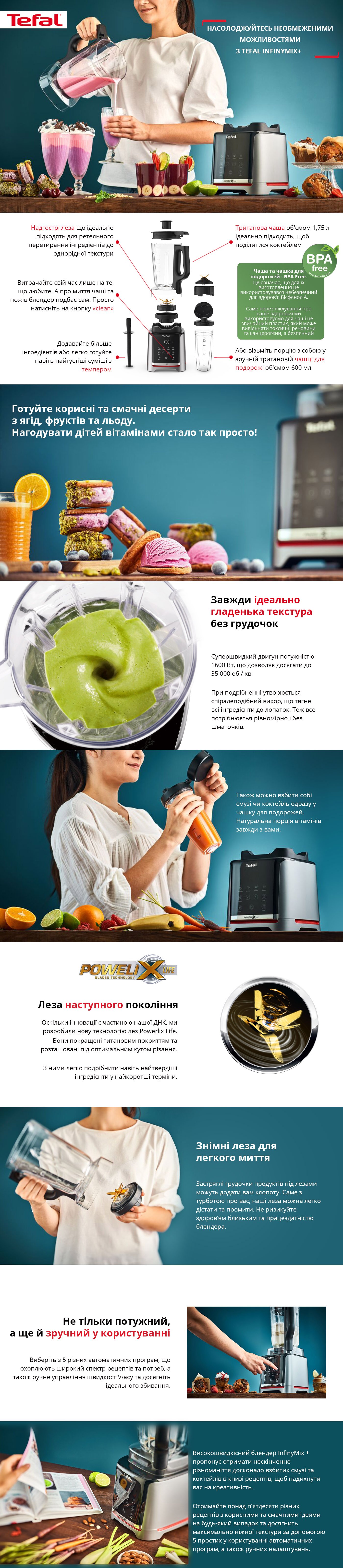 Опис Блендер стаціонарний Tefal InfinyMix + BL91HD31 черный