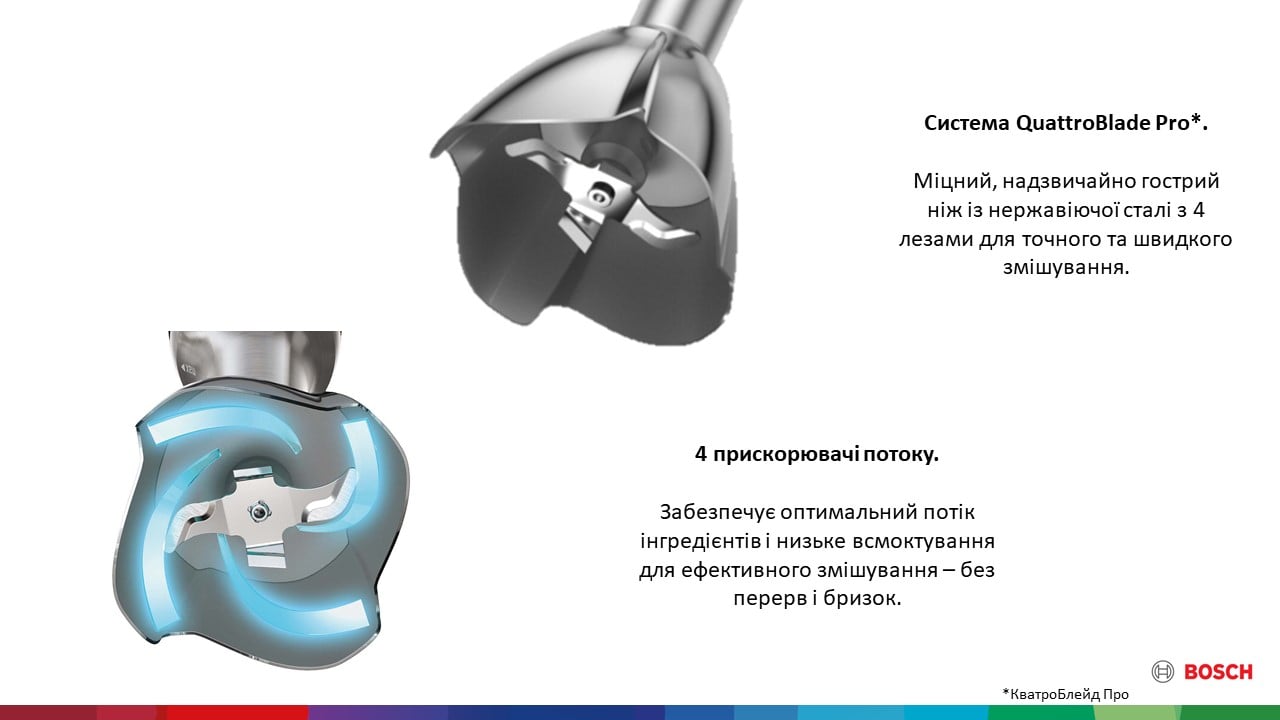 - ніжка блендера із нержавіючої сталі з системою QuattroBlade Pro