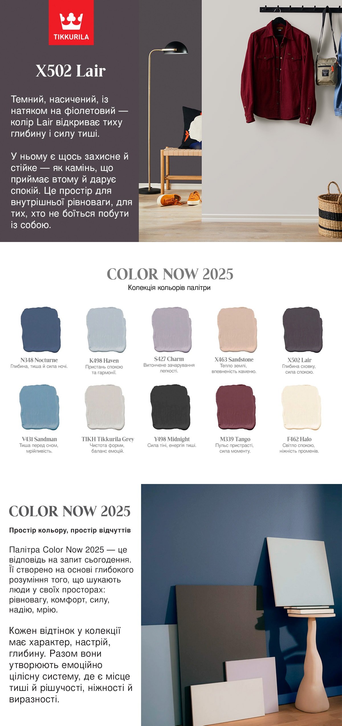 Фарба акрилатна водоемульсійна з колоруванням TIKKURILA Harmony глибокий мат X502 Lair 2,7 л