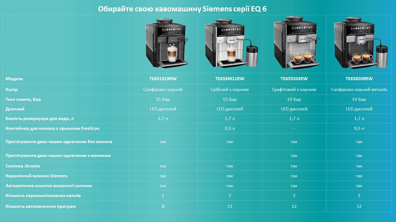 Основні характеристики Кавомашина Siemens TE651319RW