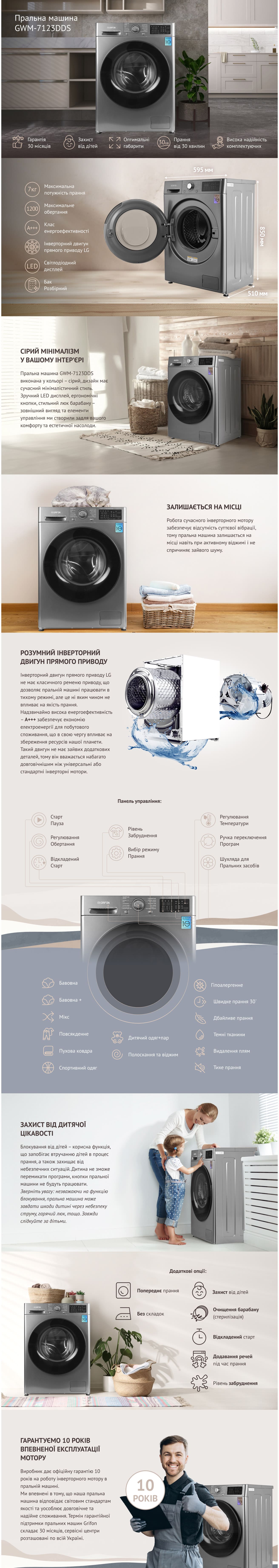 Основні характеристики Пральна машина Grifon GWM-7123DDS