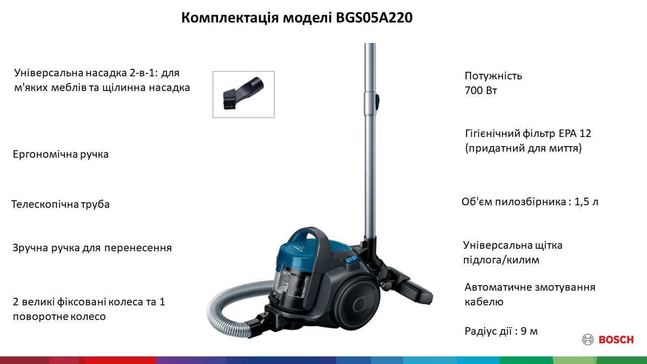 Опис Пилосос Bosch BGS05A220