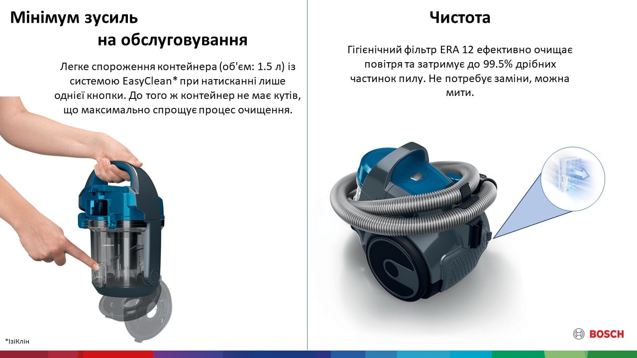 - легке зняття і спустошення пилового контейнера