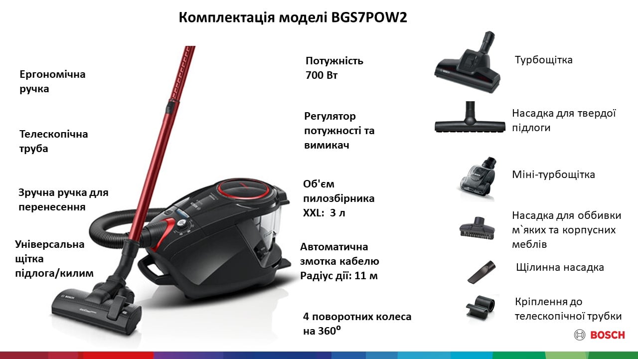Основні характеристики Пилосос Bosch BGS7POW2 black