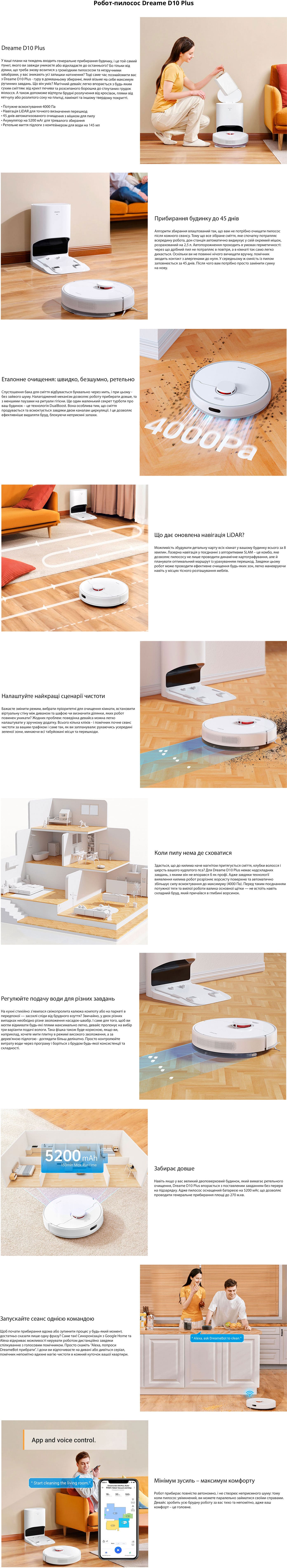 Опис Робот-пилосос мийний DREAME D10 Plus (RLS3D) white