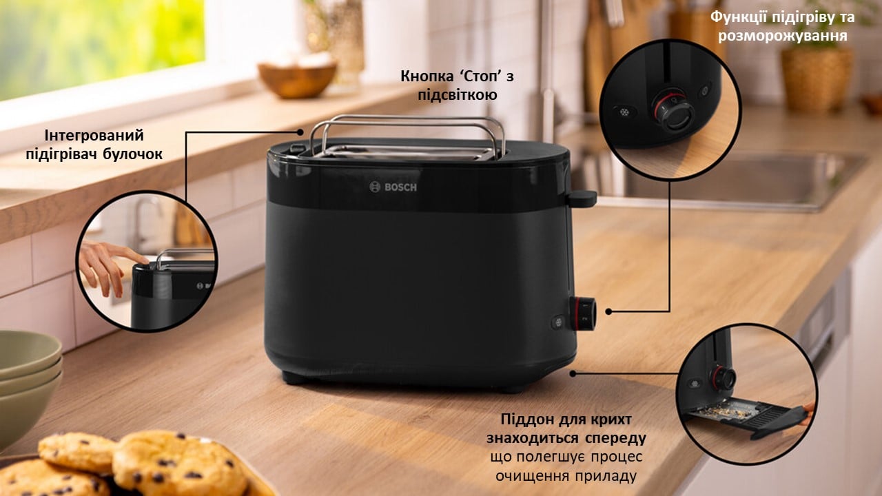 - високий підйом решітки для легкого підняття невеликих шматочків хліба