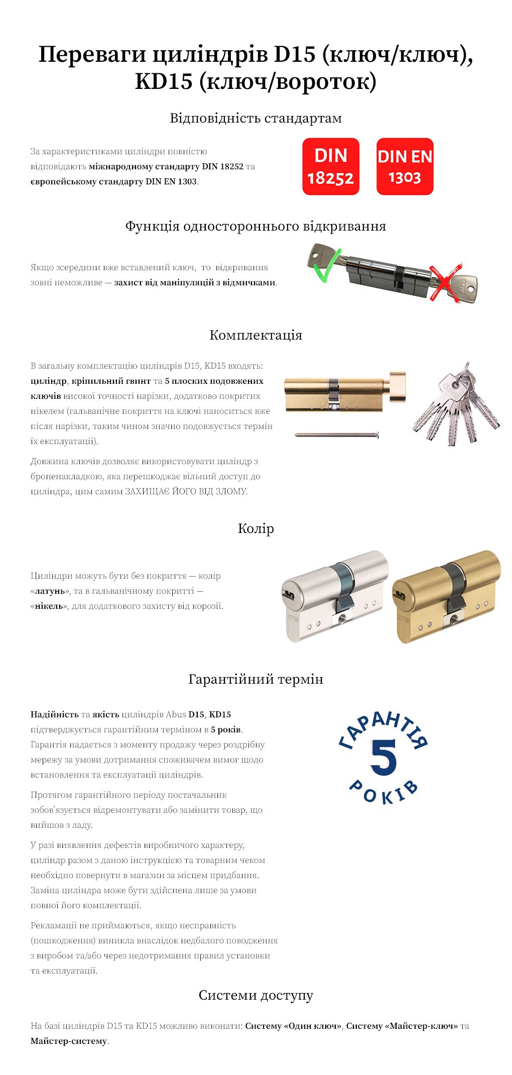 Опис Циліндр Abus KD15 45x45 ключ-вороток 90 мм матовий нікель