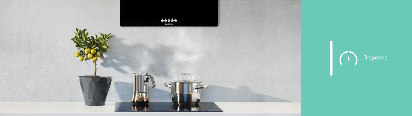 Витяжка підлаштовується під ваші потреби та працює у трьох швидкісних режимах. На початку готування достатньо мінімальної швидкості, а щойно з’являються запахи та пар, вмикайте середню. Якщо ж ви готуєте одразу кілька страв або хочете скоріш освіжити повітря на кухні після готування — виберіть максимальну потужність очищення.